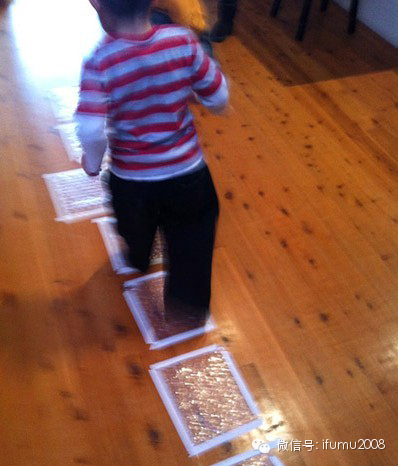 找一些塑料泡泡包装膜,剪成一段一段的,用胶条贴在地板上,让孩子去踩,当小脚丫与泡泡膜进行亲密接触时,会是什么新鲜的感觉?这个充满刺激的小活动一定会让小朋友爱上的。如果室内的温度还okay,可以让孩子脱掉袜子去踩踏,很有利于他们的触觉发展哦。
