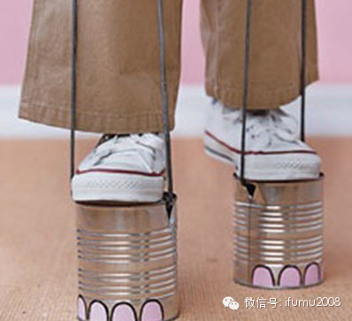 6. 踩高跷:用吃完的铁盒罐头做个简单的 diy,踩在这样的道具上,和踩在地上有什么不同?让孩子们来告诉你吧!