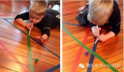 还是胶条,聪明的父母在地板上贴出迷宫,设置好出入口,考验孩子们的时候到了。