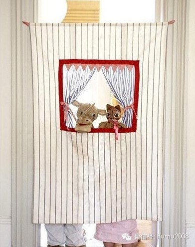12. 家庭小剧场:找一块床单,diy成一个简单的小幕布,让孩子们带着他们的小手偶来进行绘声绘色的表演吧,要鼓励他们尽情想像来创造吧,其乐融融的家庭亲子时光,多美妙。