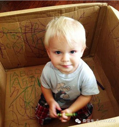 1. 纸箱空间:蜡笔+空纸箱=安静的游戏空间,可以尝试一下。